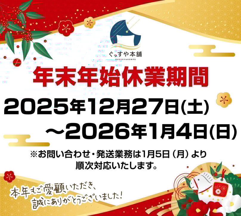 年末年始休業期間:2025年12月27日(土)~2026年1月4日(日)